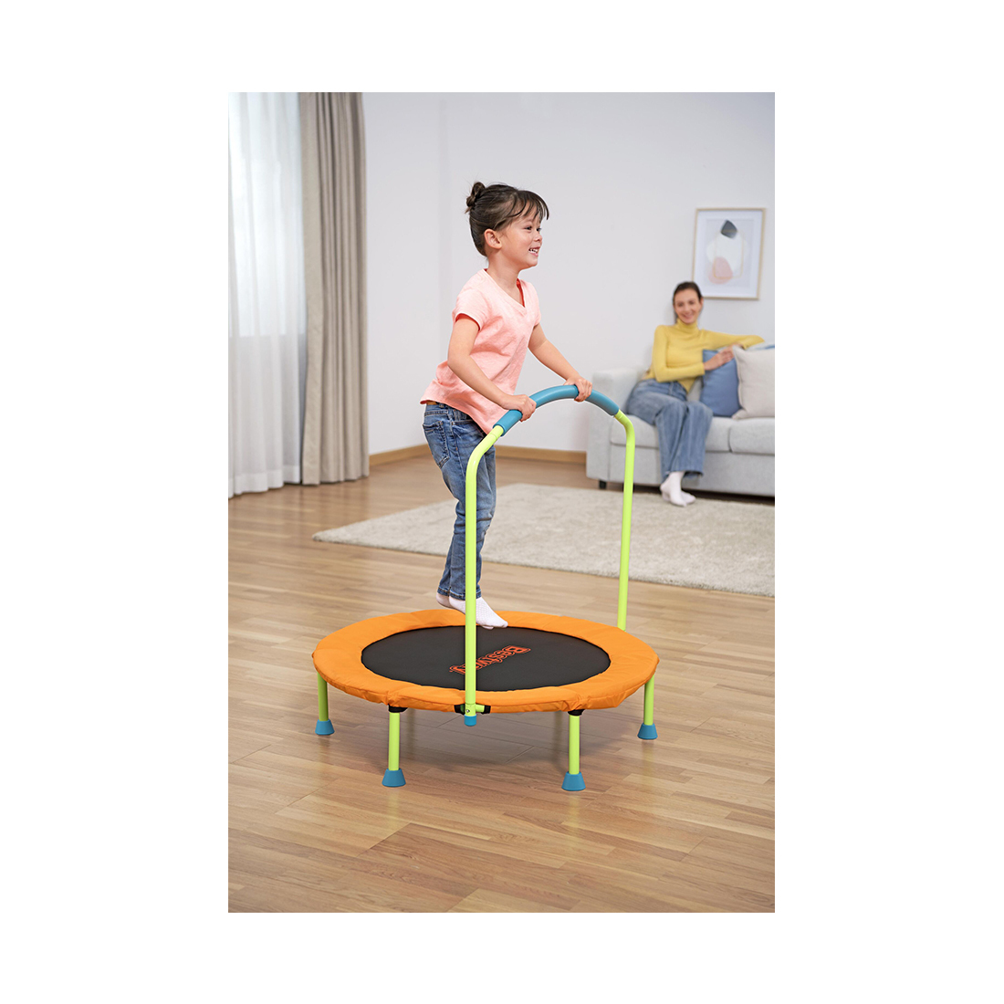 Батут Bestway® WonderJump™ — это идеальный способ помочь вашему дошкольнику провести весь день, выплеснуть энергию и улучшить основную и крупную моторику. Благодаря поручню с покрытой пеноматериалом мягкой ручкой ваш ребенок в возрасте от 3 лет сможет улучшить равновесие, координацию и силу, смеясь и прыгая по прочной поверхности батута WonderJump. Батут устанавливается за считанные минуты без каких-либо инструментов и подходит для большинства небольших помещений. Кроме того, он оснащен нескользящими насадками для ножек, которые удерживают батут на месте. Когда ваш ребенок закончит играть с батутом, просто снимите поручень, отвинтите ножки и сложите батут, чтобы легко убрать его на хранение благодаря компактной конструкции. Каждый день можно наполнить прыгающей игрой с батутом Bestway WonderJump.