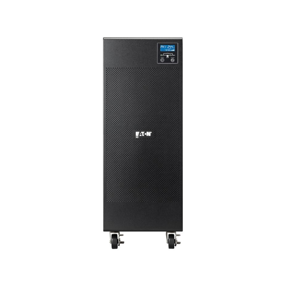 Источник бесперебойного питания, Eaton, 9E10Ki, Онлайн, Напольный, Фазы: 1:1 / 3:1, Мощность 10000ВА/8000Вт, Диапазон работы AVR: 176-276В (с возможностью регулировки до 100-276В), Бат.: 12В/9 Ач*20шт., Чистая синусойда, Клемная колодка, Smart, USB-B, RS232, SNMP слот, LCD, ABM, Цвет Чёрный
