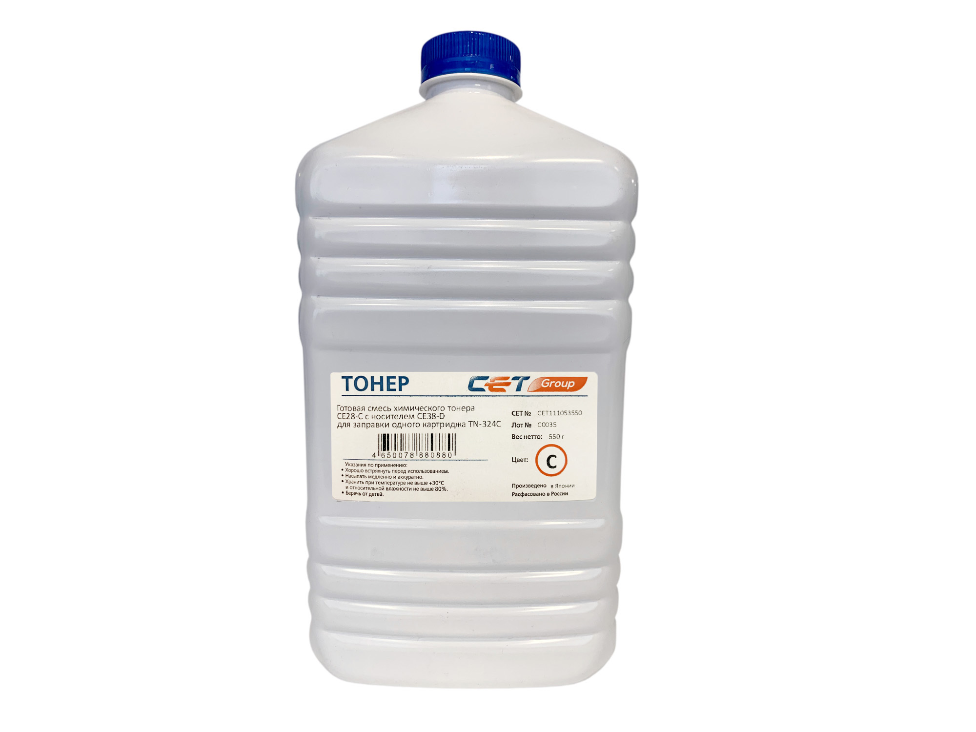 Тонер (CPT) + носитель CE28 TN-324C для KONICA MINOLTA Bizhub C258/308/368 (Japan) Cyan, 550г/бут, CET111053550