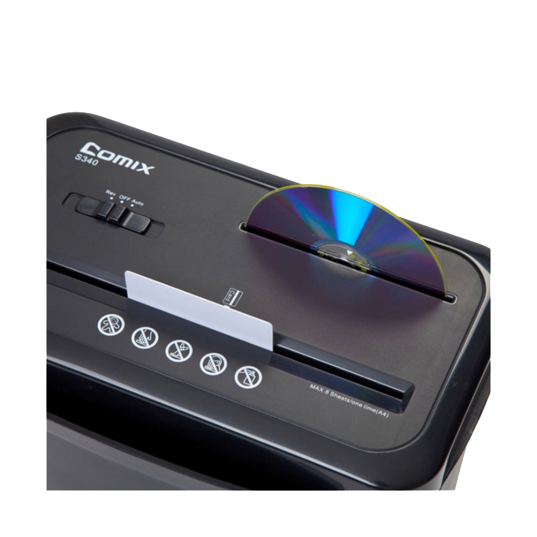 Қағаз ұсақтағыш COMIX S340, A4, Бір уақытта беруі: 8 парақ, CD/банк карталарын жою, Құпиялылық деңге