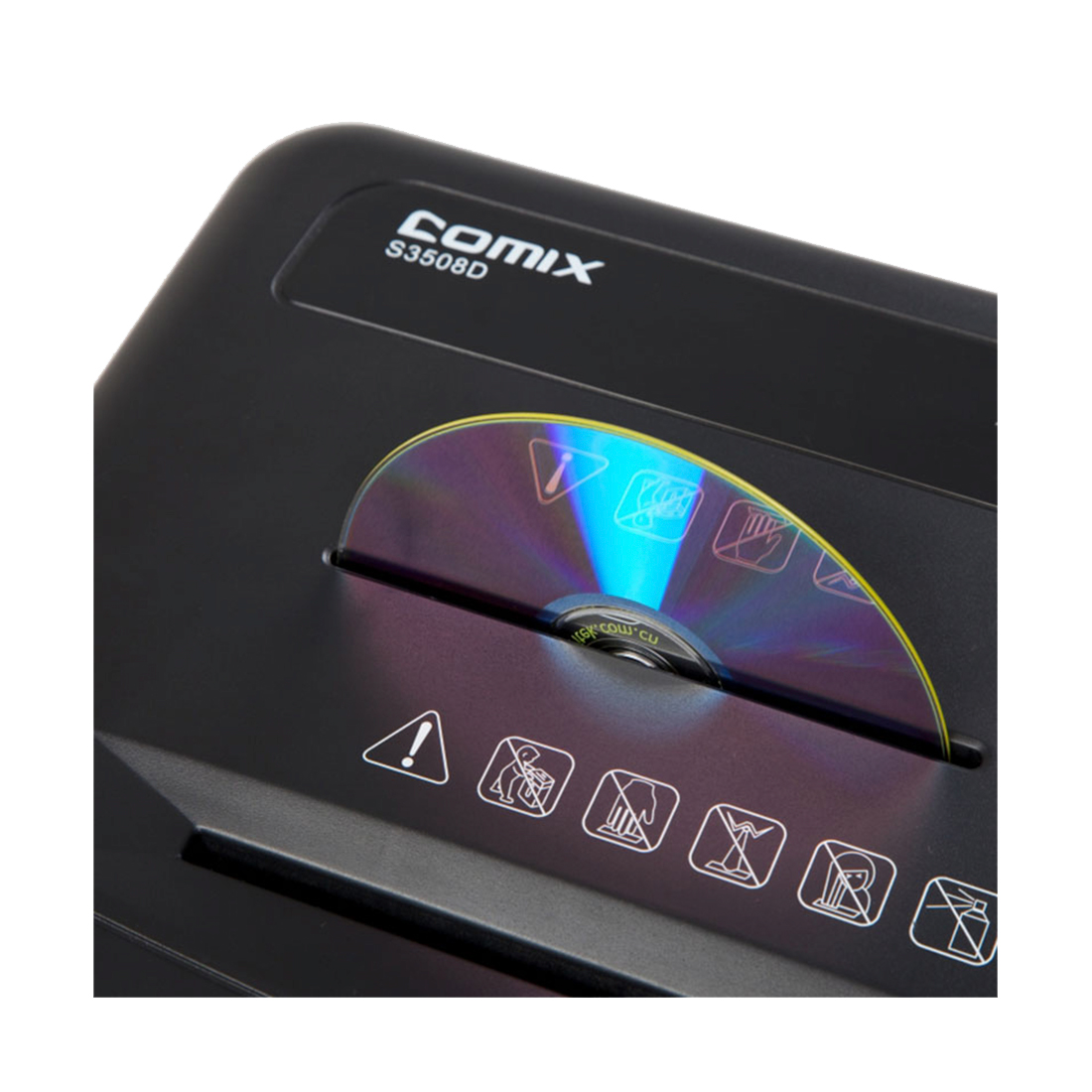 Уничтожитель бумаг, COMIX, S3508D, A4, Подача: 8 лист., Уничтожение CD/кредитных карт, Уровень секретности: 4, Скорость 2.3 м/мин, Ёмкость корзины 22 л., 65 дБ, Микро резка, Чёрный