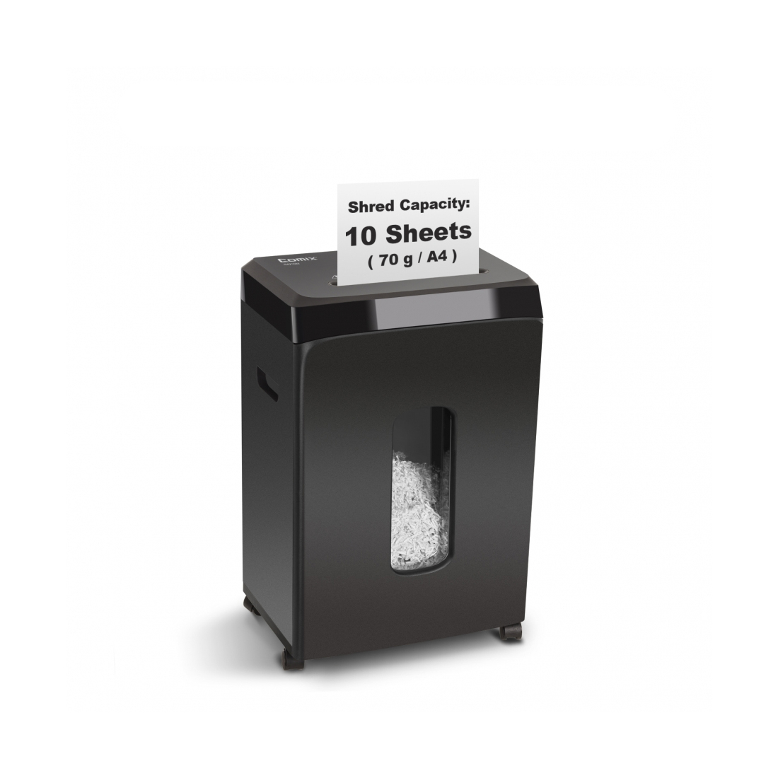 Уничтожитель бумаг, COMIX, S4210M, A4, Подача: 8 лист., Уничтожение CD/кредитных карт, Уровень секретности: 4, Скорость 2.3 м/мин, Ёмкость корзины 22 л., 65 дБ, Микро резка, Чёрный