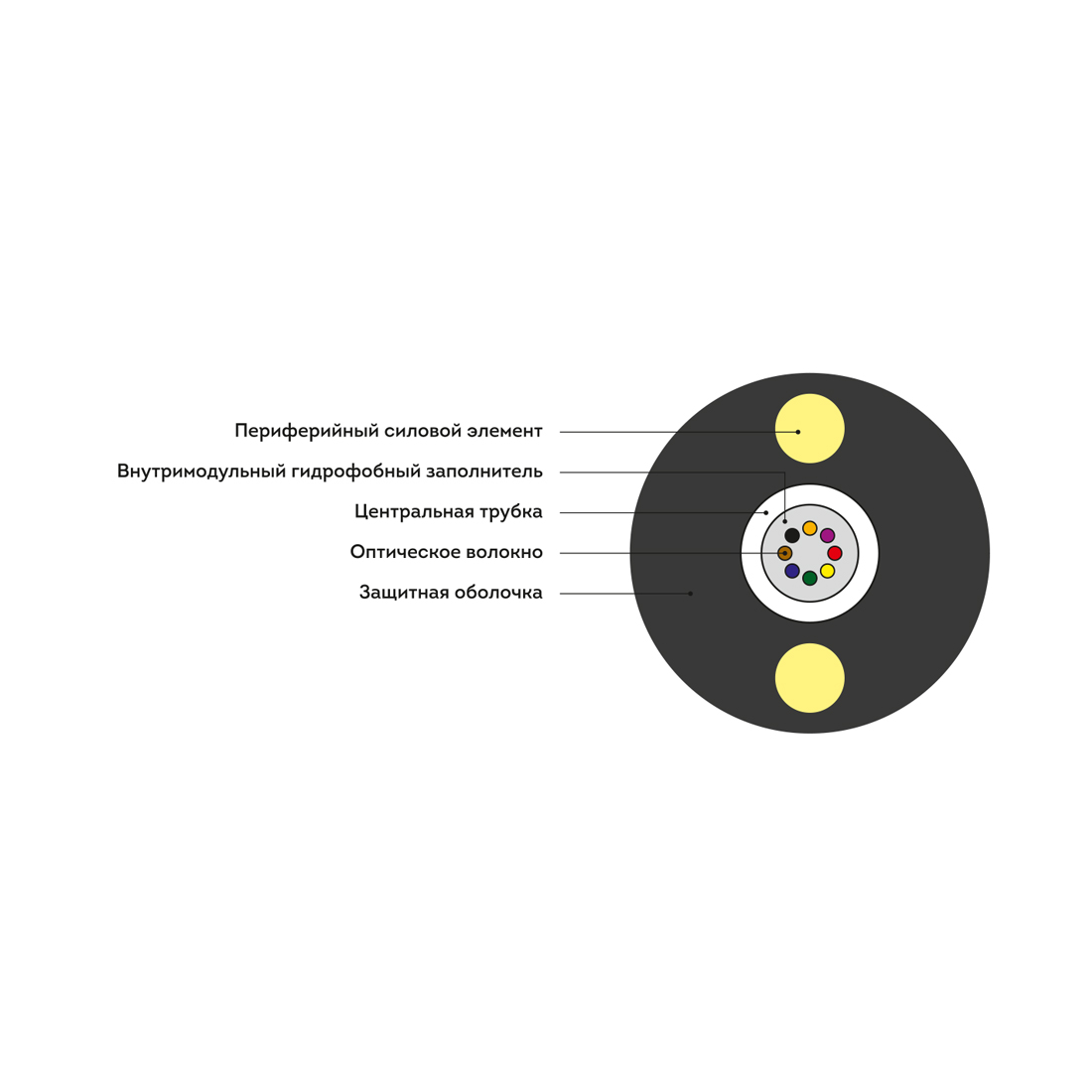 Кабель оптоволоконный, Интегра, ИК-Т-А2-1.0 кН, подвесной круглый с двумя периферийными силовыми элементами