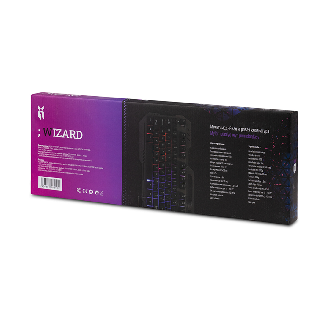 Клавиатура, XG, Wizard, Игровая, USB, Кол-во стандартных клавиш 104, Размер: 490*190,5*23,0 мм., Длина кабеля 1,5 метра, Защита от случайного пролива воды/кофе, Анг/Рус/Каз, Чёрный