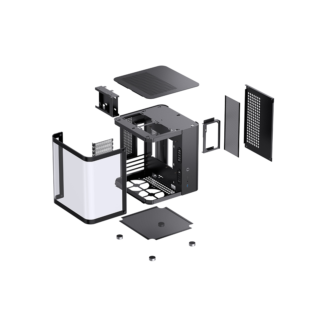 Компьютер корпусы, Jonsbo, TK-1, TK-1 Black, Micro-Tower, M-ATX/M-ITX, USB 3.2 Type-C1/USB 3.01, Аудио+Микрофон, Процессор кулерінің биіктігі 165 мм дейін, VGA ұзындығы 280 мм дейін, 23.5" немесе 22.5"/13.5", Болат, Шыныланған әйнек, 299310*345 мм, Қуат көзі жоқ, Қара