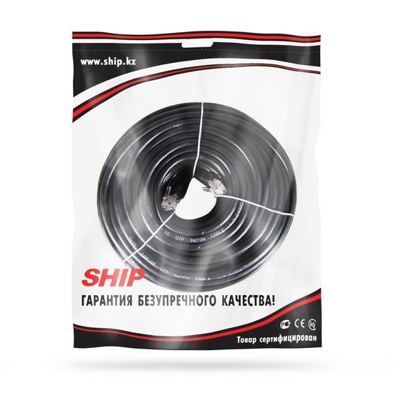 Патч Корд, SHIP, S3025BK1500-P, Cat.5e, UTP, LSZH, RJ-45, 15 м, Чёрный, Пол. пакет