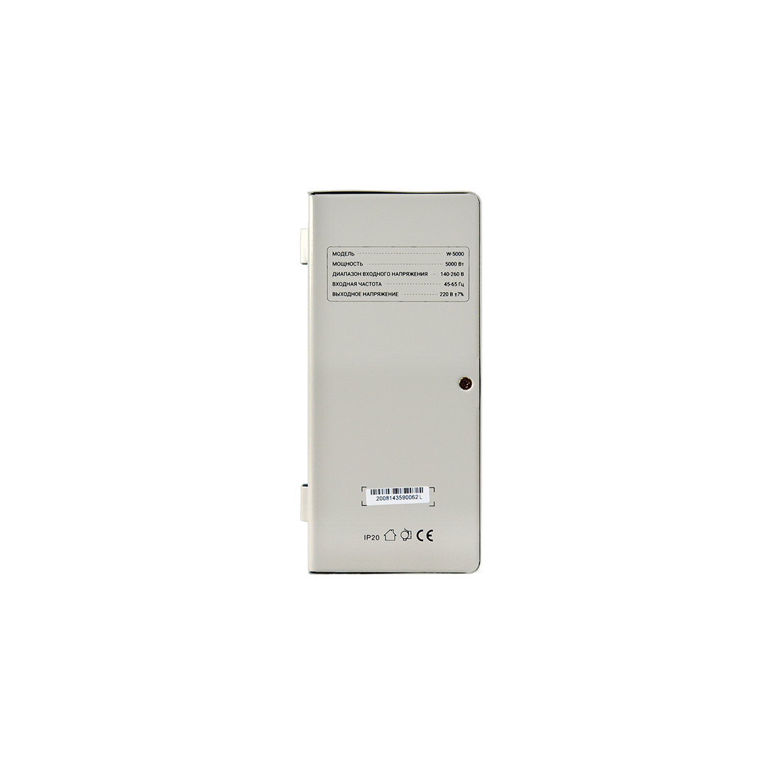 Стабилизатор (AVR), SVC, W-5000, Мощность 5000ВА/5000Вт, LED-дисплей, Диапазон работы AVR: 140-260В, Вых.: 220В+/-7%, Клеммная колодка, Габариты: 380*234*105, Белый